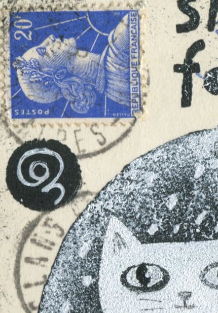 This is an inkjet print taken from my original art (which was stencilled on the reverse of a vintage postcard)